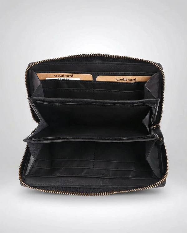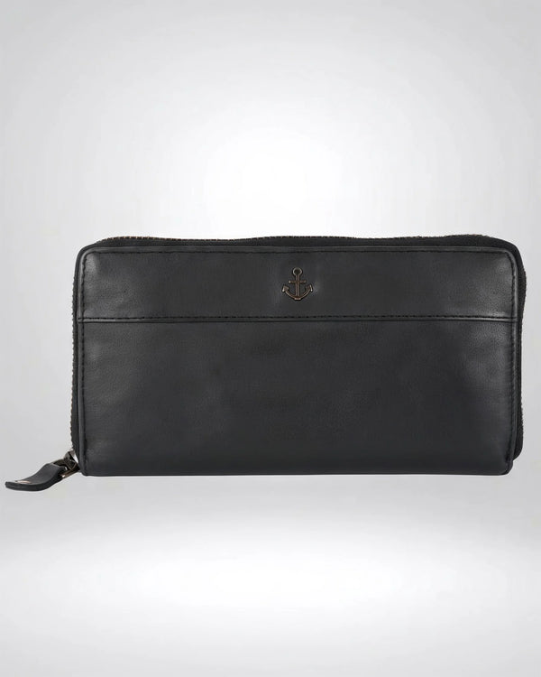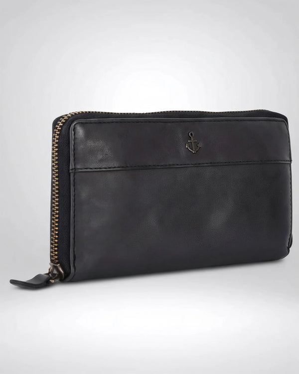 Our Atlantika long wallet from Harbour 2nd is a secure place to store money and cards, as it features a zip closure all the way around. The soft, supple leather is beautifully embellished with the small metallic anchor that is signature Harbour 2nd. The card and slip pockets inside offer plenty of space for all the important belongings we carry around with us on a daily basis. Our leather wallets from the AnchorLove collection are made of smooth, washed leather. This allows our Harbour 2nd wallets from the AnchorLove collection to develop a unique patina while remaining soft and supple.