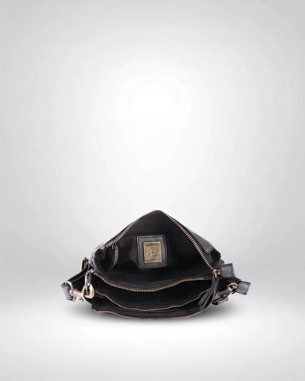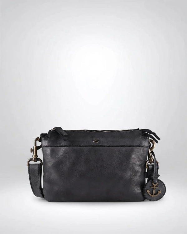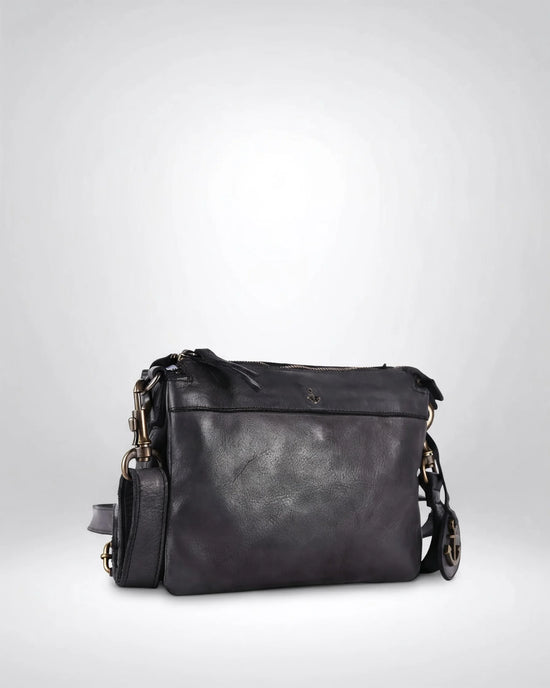 The cute little Evita model from Harbour 2nd is our favorite companion, one we won't want to part with. It has two main compartments divided by a zippered pocket. It offers space for all our important belongings like our wallet, lip gloss, and tissues. The smooth, washed leather is very soft and simply looks great. The cute little metallic anchor symbol blows a breeze of Hamburg wind around our noses. The Evita model – our little treasure from the north. Our leather handbags from the AnchorLove collection are made of smooth, washed leather. This allows our Harbour2nd handbags from the AnchorLove collection to develop a unique patina, while remaining soft and supple.