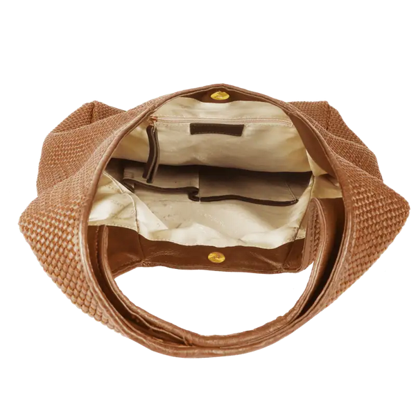 Großzügiger, markanter. Ihr charakteristisches, von Hand geflochtenes Rindsleder verleiht ihr eine ikonische Struktur mit Tiefe und Bewegung – elegant, modern und dennoch zeitlos.