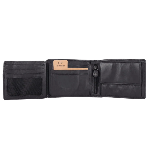 Im Inneren bietet KAIROS durchdachte Aufteilung mit 10 Kartenfächern, einem Scheinfach und einem Hartgeldfach mit Reißverschluss – alles, was du für den Alltag brauchst, sicher und übersichtlich verstaut.
