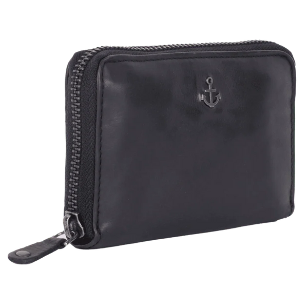 Dank Rundum-Reißverschluss bleibt alles sicher verstaut: sechs Kartenfächer, ein Hartgeldfach und weitere kleine Steckfächer sorgen für Ordnung auf kleinstem Raum. Der kleine Metallanker auf der Vorderseite verleiht ihr die maritime Note, die sofort an Hamburgs Speicherstadt erinnert.