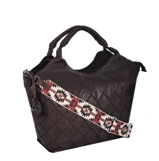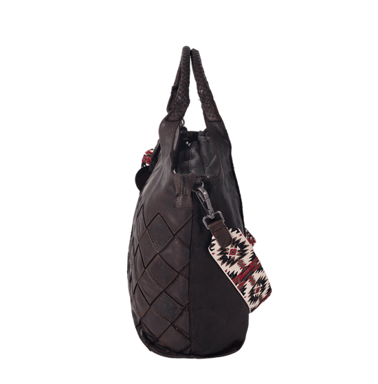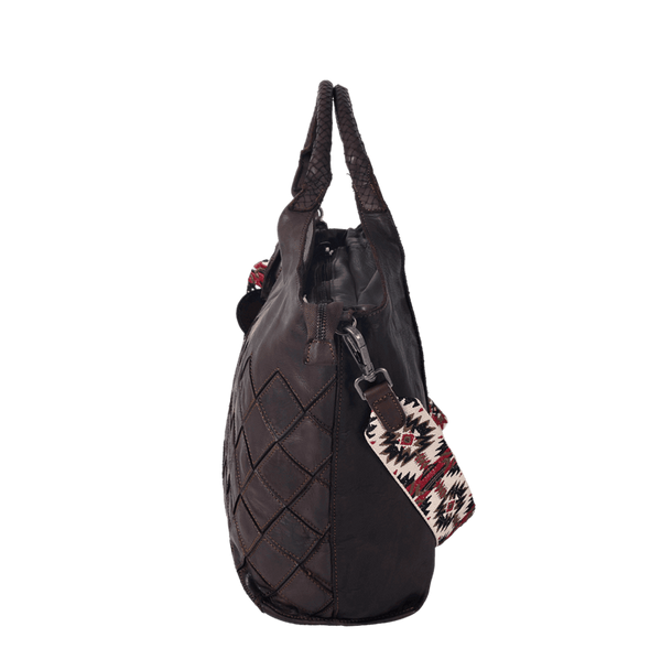 Ein besonderes Highlight ist der gewebte Schulterriemen mit Ethnomuster, der dem Look eine moderne, trendbewusste Note gibt und gleichzeitig superbequem ist. Ergänzt wird das Design durch die geflochtenen Henkel, die der Tasche ihre unverkennbare feminine Stärke verleihen.